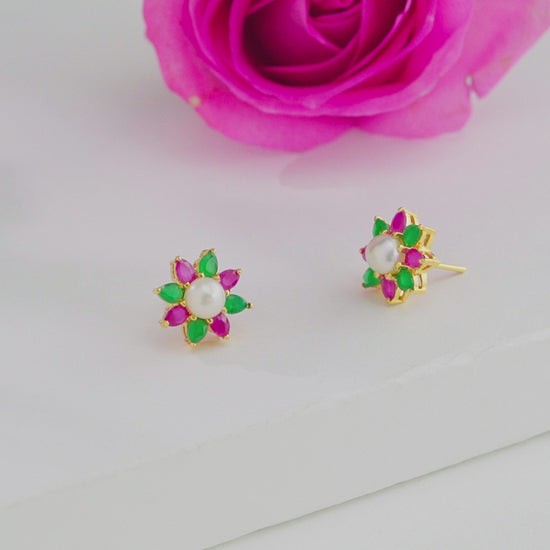 Brighten up your look with these Multicolor Stone Stud Earrings, featuring lustrous white button-shaped freshwater pearls sized 6-7 MM. Accented with vibrant multicolor stones, they strike a perfect balance between elegance and playfulness. Crafted in A-grade quality and secured with a life-long guarantee on pearls, these studs are a timeless addition to any collection. Ideal for daily wear, festive occasions, or pairing with colorful attire, they bring a refreshing sparkle to every ensemble.