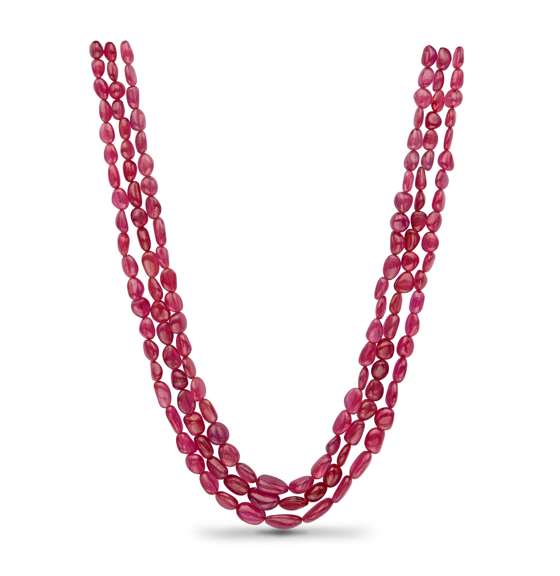 Unveil bold elegance with our Natural Ruby Necklace , crafted with radiant red tumble beads of AA quality. This luxurious piece features 5 rows of meticulously selected rubies, weighing approximately 606.3 carats, and measures 18 inches in length. Its rich tone and natural luster make it a striking statement accessory.