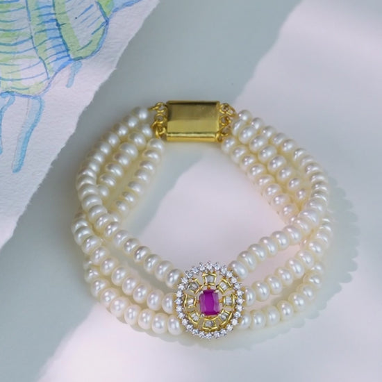 Elevate your jewellery collection with this elegant Freshwater Cultured Pearl Bracelet, featuring white button-shaped pearls of 4-5MM size and A quality. Expertly handcrafted in 3 graceful rows over an 8-inch length, the pearls exhibit a soft, radiant luster and refined finish. The uniform size and smooth surface of each pearl create a timeless and sophisticated look. Designed for lasting elegance, this bracelet is backed by a Life Long Guarantee on Pearls for enduring beauty.