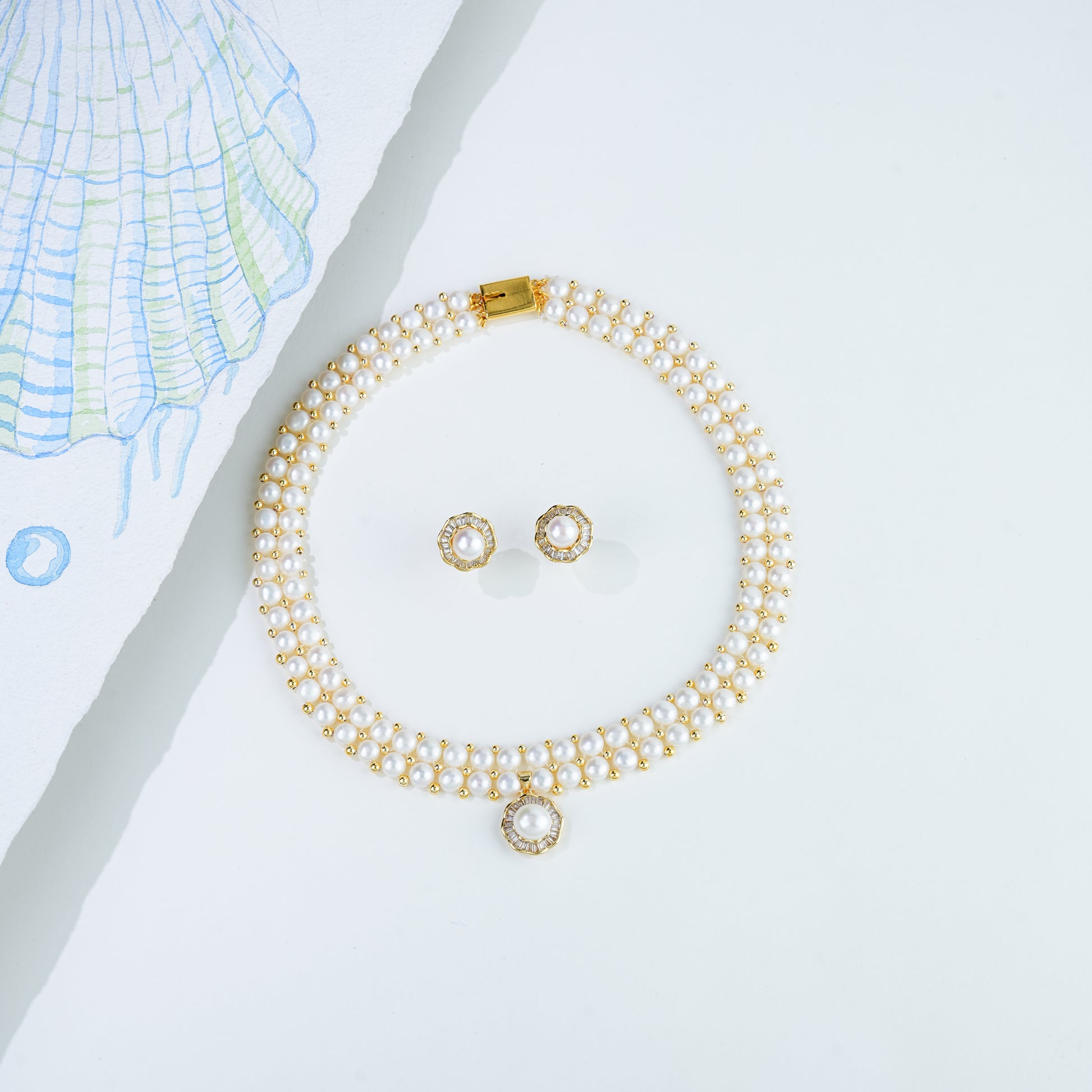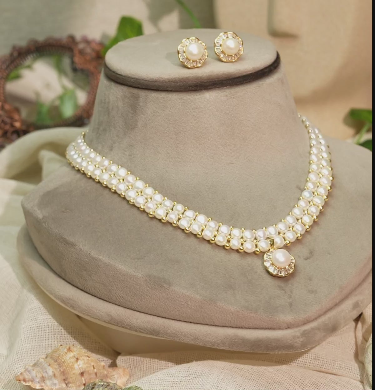 Precious Fancy Button Freshwater Pearl Necklace Set