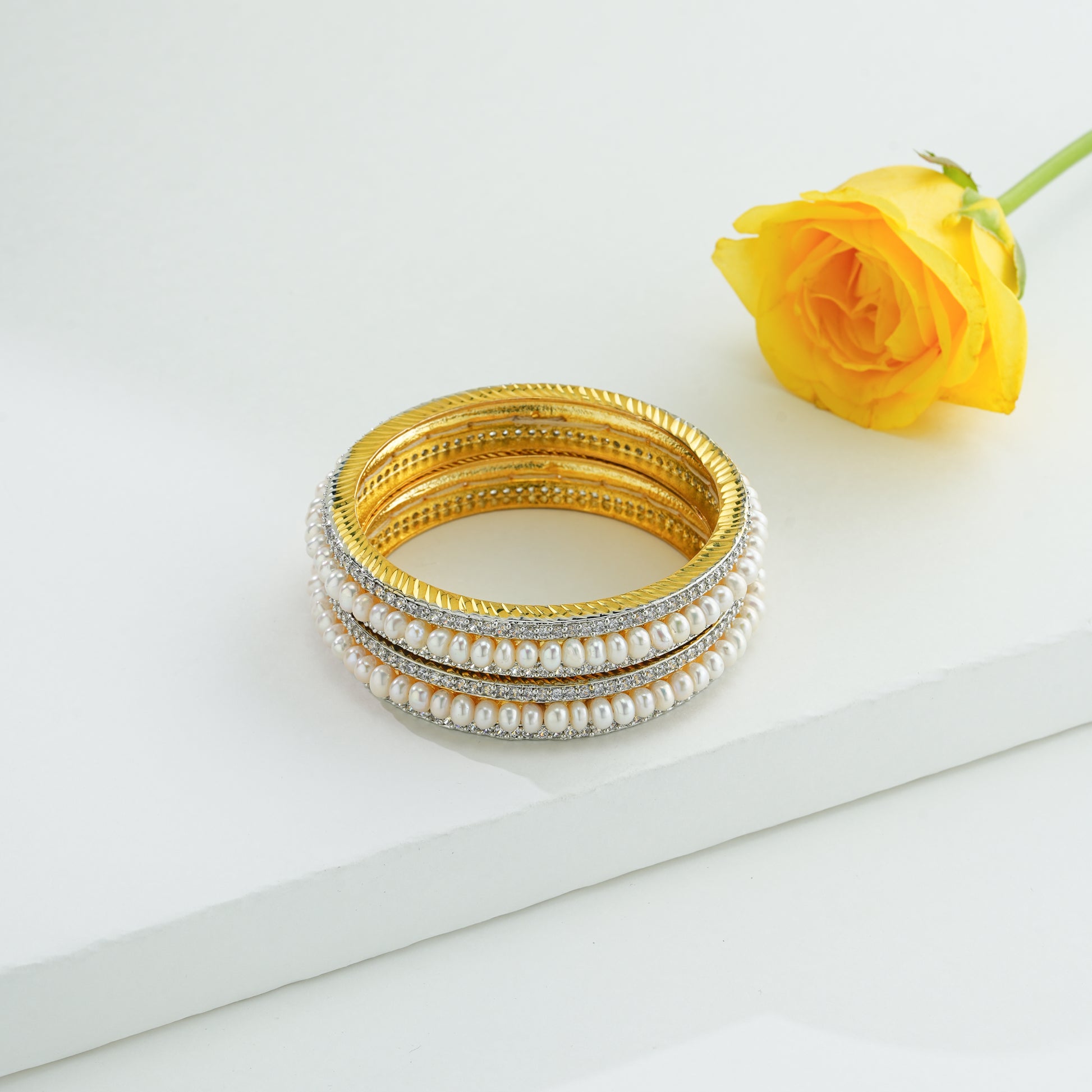 Add timeless elegance to your collection with the Pearl Bangle, featuring lustrous Freshwater Cultured Pearls in a refined half-round shape. Each 4-5MM white pearl is carefully selected for its A quality, offering a beautiful balance of shine and sophistication. Designed with a single row and available in sizes 24, 26, and 2`8, this bangle ensures a graceful fit for every wrist. Supported by a Life Long Guarantee, it’s a perfect blend of beauty and trust. Ideal for festive celebrations, traditional functions, or as a subtle everyday accessory to enhance both ethnic and formal outfits.