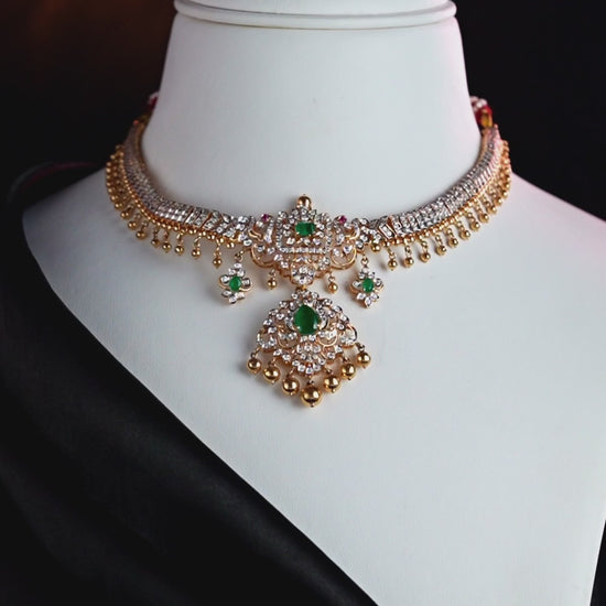 Enquire Now On WhatsAppThe Radiant Diamond Necklace is a masterpiece of brilliance, crafted to perfection with dazzling diamonds that exude timeless elegance. Its refined design and exquisite detailing make it a captivating addition to any jewelry collection. Each diamond sparkles with unmatched brilliance, enhancing your charm and sophistication with every wear. A symbol of grace and luxury, this necklace is designed to leave a lasting impression. Ideal for weddings, festive occasions, and grand celebrations, it complements both traditional and contemporary attire beautifully, making you shine with elegance and confidence on every special occasion you choose to adorn it.