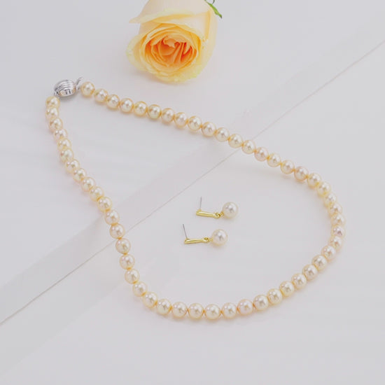 7.0-8.0mm Golden Round Saltwater Akoya Pearl Necklace Set - AAA Quality