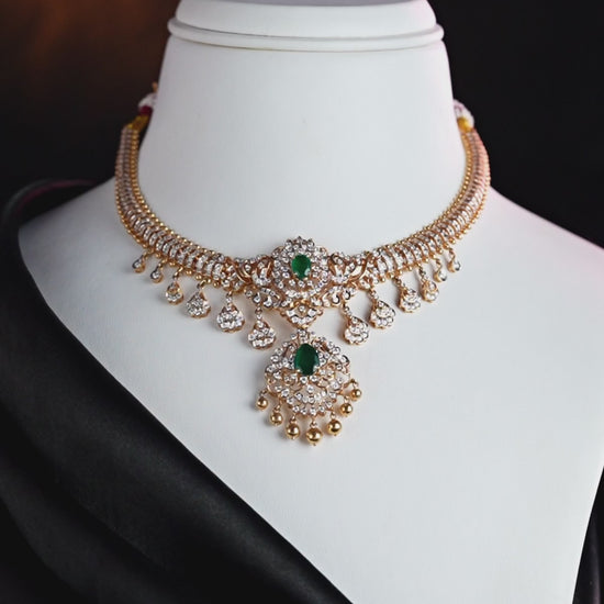 Enquire Now On WhatsAppThe Sparkling Diamond Necklace is a radiant symbol of elegance, designed to dazzle with its brilliance and charm. Expertly crafted, each diamond is hand-set to create a stunning interplay of light and sparkle. Its graceful design enhances the neckline, making it a timeless treasure in your jewelry collection. With a perfect blend of sophistication and luxury, this necklace is an ideal choice for those who seek refined beauty. Perfect for weddings, festive occasions, and evening gatherings, it pairs beautifully with both ethnic and modern attire, adding a sparkling touch of glamour to every look you adorn.