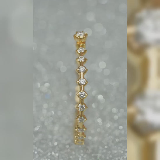 Enquire Now On WhatsAppIlluminate your style with this Stunning Diamond Bangle. This breathtaking piece features an endless loop of brilliant diamonds, meticulously set to catch the light from every angle. The sleek and modern design ensures it's a timeless accessory that radiates sophistication and luxury. This bangle is a true statement of elegance and refined taste, perfect for adding a touch of glamour to your look. It's an ideal choice for formal events, from gala dinners to wedding receptions, beautifully complementing an evening gown, a cocktail dress, or even a traditional saree.