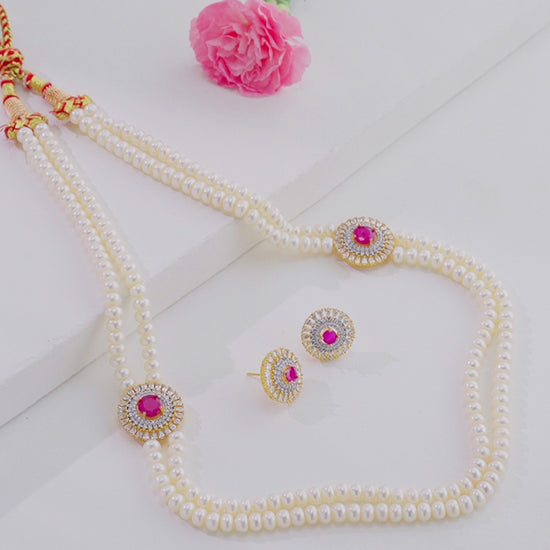 Stunning Red Stone Freshwater Pearl Necklace and Earring Set