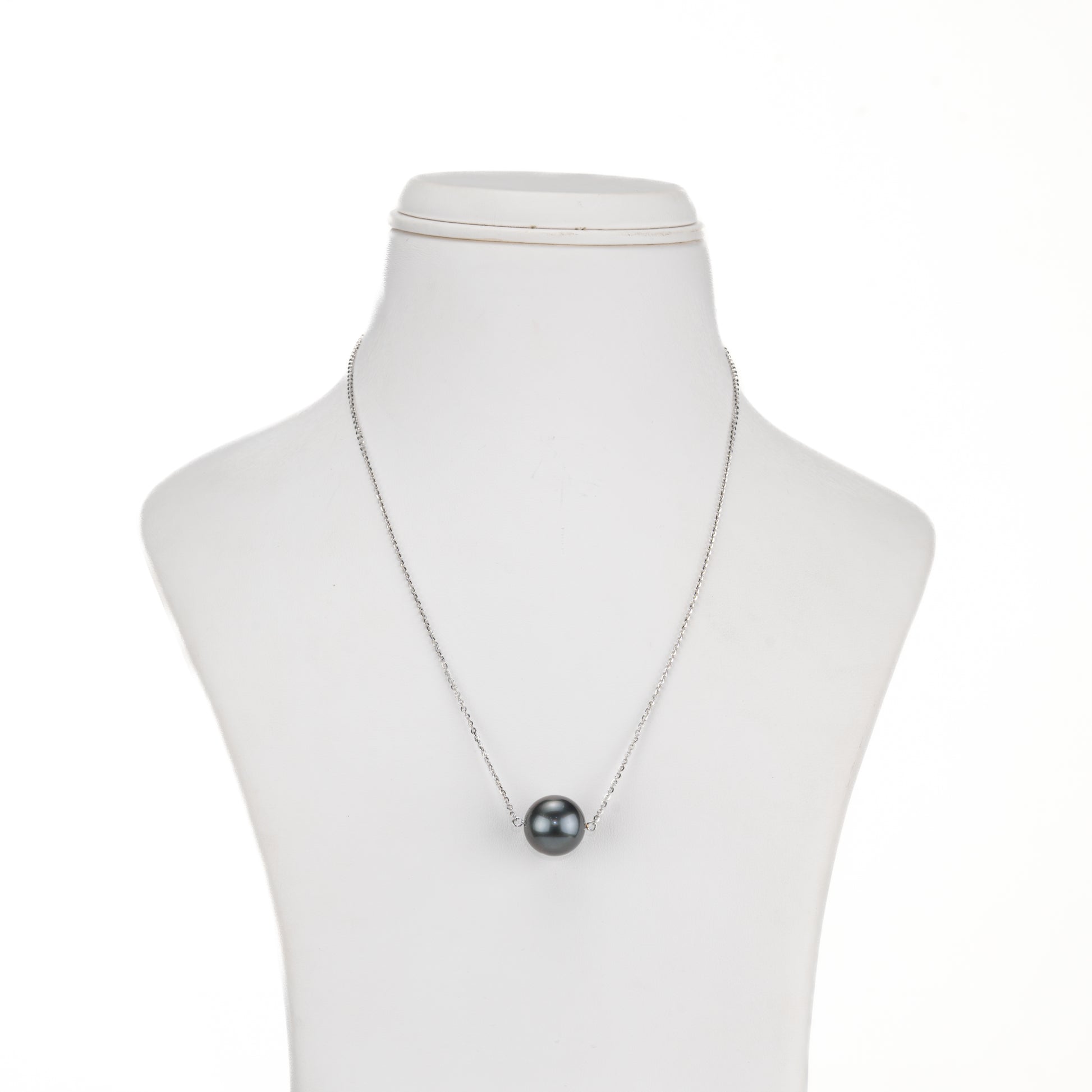 13.0-14.0mm Black Tahitian Saltwater Pearl With 18K White Gold Chain - AAA Quality