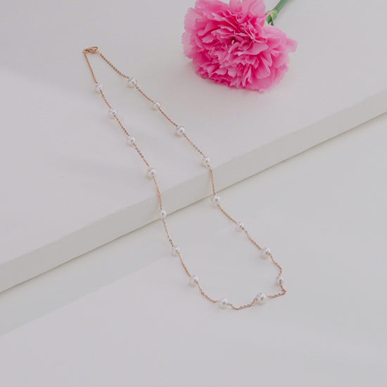 Experience the refined elegance of our 5.0–6.0mm White Akoya Saltwater Pearl Chain, a timeless piece crafted to elevate everyday luxury. Each pearl is a AAA-quality Akoya, celebrated for its perfectly round shape, radiant white hue, and exceptional natural luster. Hand-selected for uniformity and brilliance, the pearls are gracefully strung along an 18-inch fine 18K rose gold chain, weighing 2.276 grams, adding a warm, romantic glow that complements the pearls’ luminous sheen.