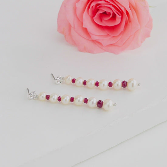 Add a touch of royal elegance with our White Pearl with Ruby Earrings, combining the timeless beauty of pearls with the rich allure of vibrant rubies. These earrings feature high-grade, lustrous white pearls paired with carefully selected natural ruby accents, offering a harmonious blend of purity and passion. Meticulously crafted and backed by a lifelong pearl guarantee, they reflect impeccable quality and sophistication. Ideal for weddings, festive celebrations, or formal gatherings, these earrings beautifully complement traditional Indian attire like sarees and lehengas, while also adding a regal flair to contemporary ensembles. A classic choice for graceful occasions.